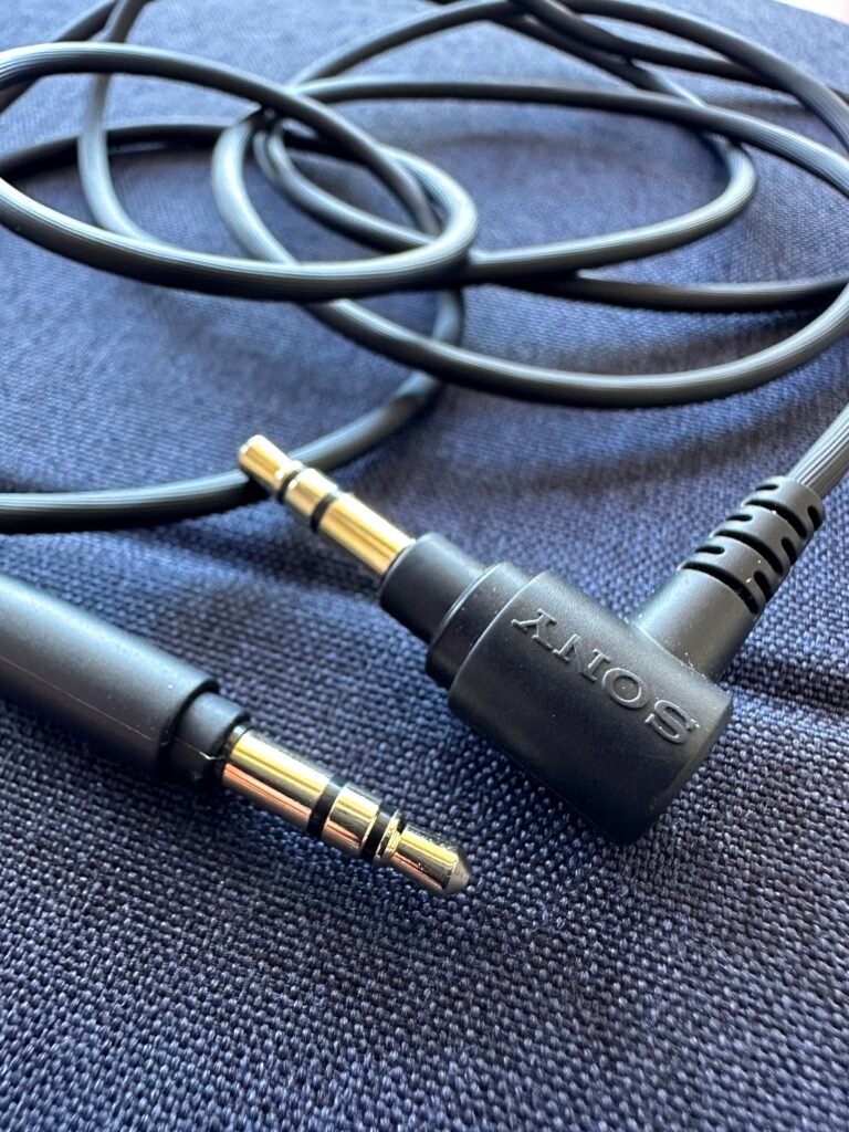 The box also includes a high-quality audio cable for wired listening. And when I say high-quality, I mean it — the connectors have a gold finish and the cable itself feels premium, not like some throwaway afterthought. For anyone who wants to squeeze the absolute maximum sound quality out of these headphones — or for those situations where your battery dies and you need to keep listening — the wired option is a genuine feature, not a gimmick. Plug it in and the XM5 transforms into a proper wired headphone with noticeably cleaner audio. It’s a detail that shows Sony thought about the full experience, not just the wireless convenience.
